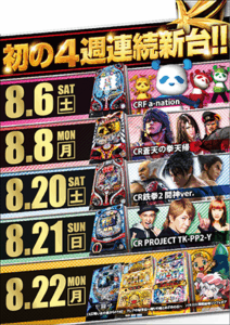 新台入替や特別イベントなどで頻繁に発生する機種POPの大量制作にも、当社は柔軟かつスピーディに対応可能です。